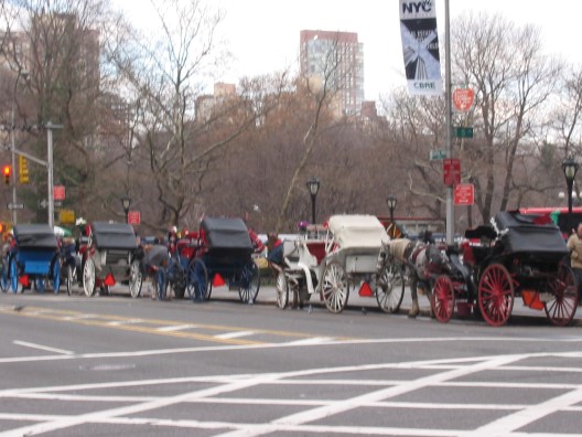 Rundgang. An den Ecken des Parks stehen Unmenegn von Kutschen, die man für beliebige Stecken und Touren am und durch den Park mieten kann. Da die Kutscher der Taxigewerkschaft angehören, verlangen sie dieselben Tarife wie die Cabbies. |