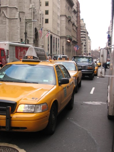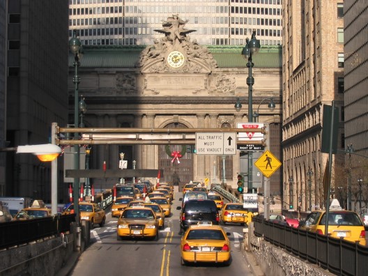 Manhattan. Man beachte die enorme Taxi-Konzentration. Halle und auch Fassade sind enorm gross und auch architektonisch beeindruckend. |