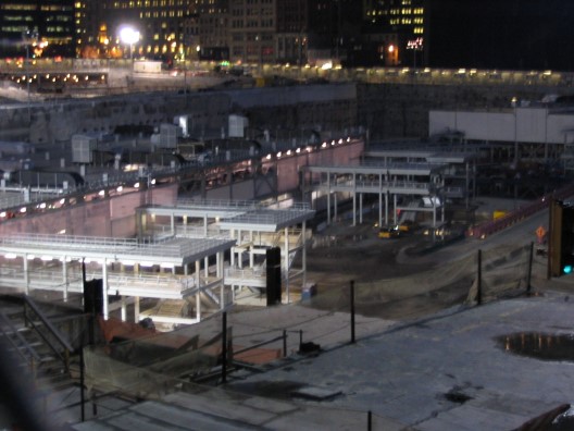 Südspitze der Halbinsel mit dem Financial District verplant. Da der Weg dann doch etwas weit gewesen wäre, habe wir uns auf das Abenteuer Metro eingelassen. Schnell war es und günstig, manchmal aber doch etwas unheimlich. Wir haben jedenfalls versucht, nicht allzusehr als Touristen aufzufallen... Hier ein Bild auf die Großbaustelle von Ground Zero, dem Platz, an dem früher das World Trade Center stand. |