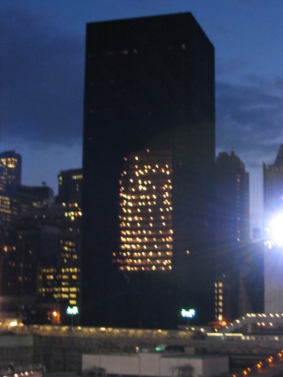 besichtigen. Ach ja, wir hatten Glück mit dem Parken. Für fast $45 für zwei Stunden ist nur eine Sonnebrille aus dem Auto geklaut worden. Das zweite Glück war, dass das Gebäude, in dem wir geparkt hatten, erst bei unserer Ausfahrt angefangen hat zu brennen. New York halt.... |