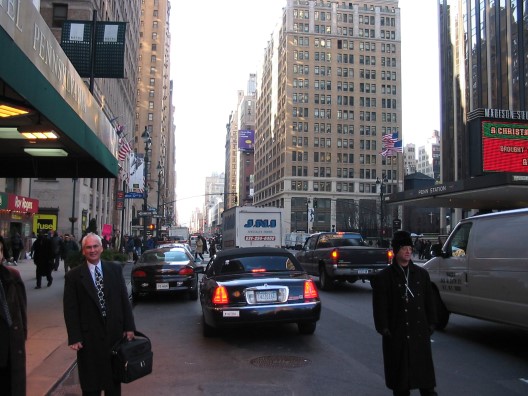 Reisebericht über eine Stadt wie New York an? Vielleicht mit ein paar Tipps, für jemanden, der in Zukunft auch einmal dorthin fahren möchte: 1) Niemals mit dem Auto nach Manhattan reinfahren!! Es gibt nichts, was einen auf so etwas vorbereitet. 2) Immer die Route bis zum Hotel mitnehmen!! Suchen nach Instinkt fällt aus, die Strassen liegen nicht nachvollziehbar. 3) Genug Zeit einplanen. Manhattan in zwei Tagen gehen tierisch an die Substanz. Hotel-Tipp: Hotel Pennsylvania, günstig und perfekt zentral gelegen. Auf dem Bild der Haupteingang, vor dem schon mal in der dritten Reihe gehalten wird.... |
