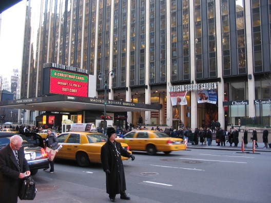 näher zu definieren, hier ein kurzer Schwenk nach rechts. Dies ist der Haupteingang vom Madison Square Garden und der liegt nicht nur direkt in der Mitte von Manhattan sondern auch direkt gegenüber dem Hotel. Okay, die Parksituation wird dadurch nicht wirklich entspannter. |