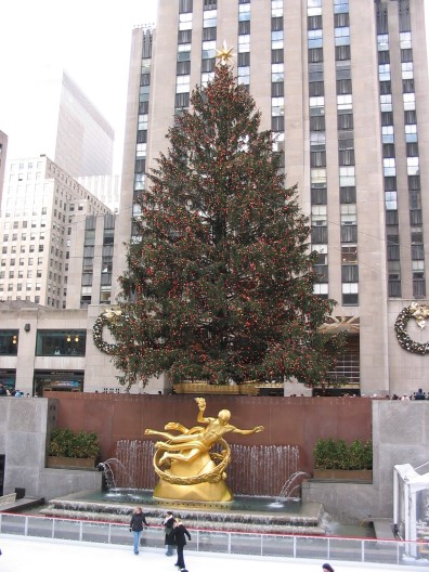 Brimborium vor das Gebäude geschafft und dort aufgestellt wird. Das erste Anschalten der Beleuchtung läutet traditionell die Vorweihnachtszeit für New York ein. Dieser Baum wog übrigens ca. 9 Tonnen.... Unterhalb des Baums liegt eine Eisfläche, auf der sich zu jeder Tageszeit zahlreiche Eisläufer tummeln. |