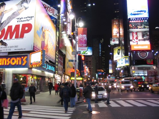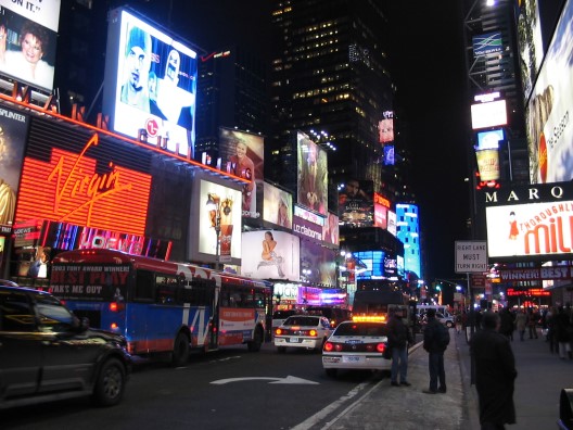 stießen wir auf die ersten Ausläufer des Time Square. Wir gingen auf der 7th Ave nach Norden und die Leuchtreklamen wurden zahlreicher und heller und die Fußgänger-Dichte stieg. An den nach wie vor enormen Verkehr und den höllischen Lärm hatten wir uns inzwischen gewöhnt. |
